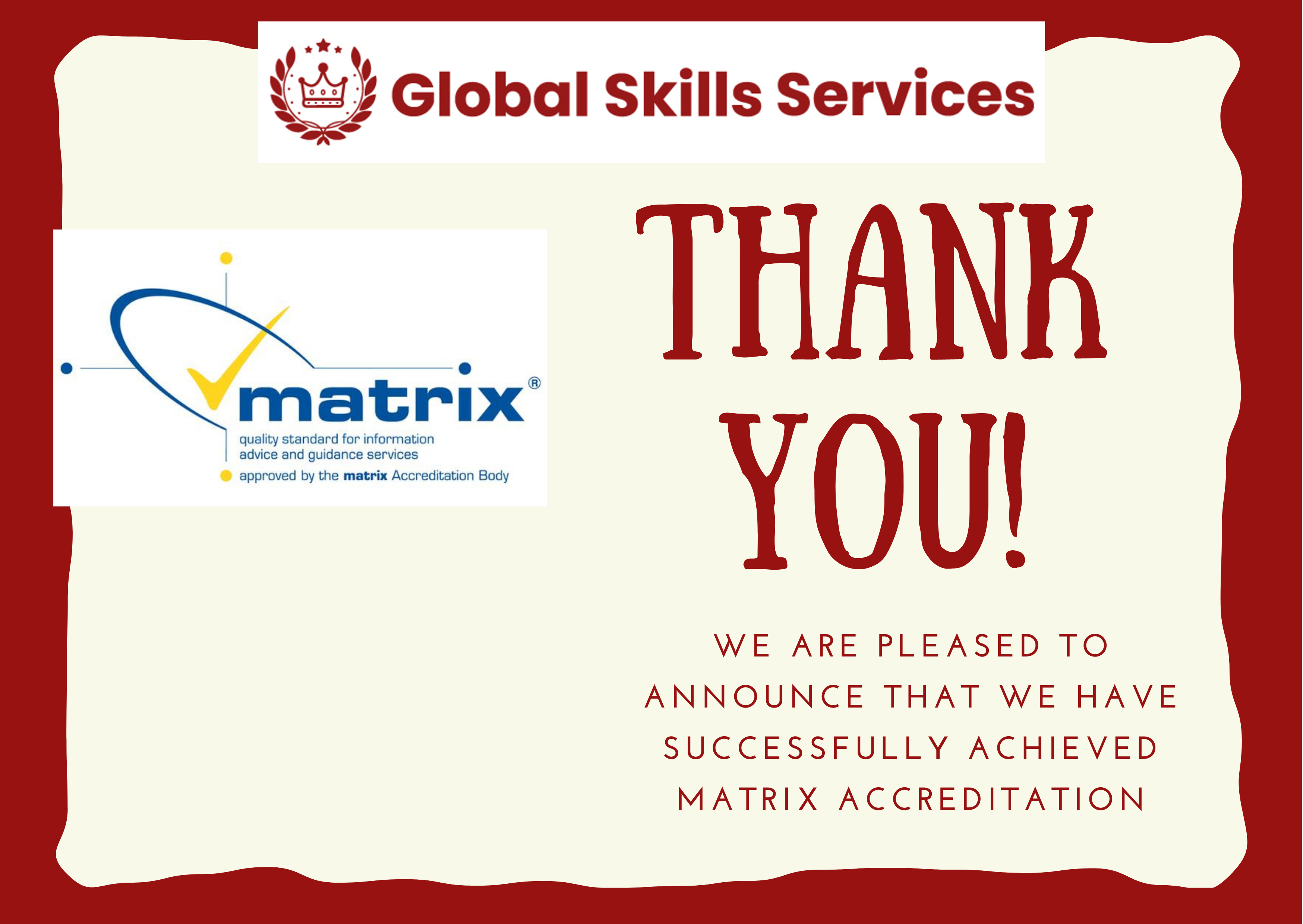 Thank you to everyone involved. Global Skills Services have been successfully accredited with the Matrix Standard.